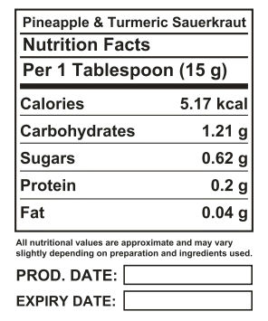 A vibrant, probiotic-rich fermented sauerkraut infused with tropical pineapple and anti-inflammatory turmeric. This unique blend supports gut health while delivering a tangy, slightly sweet flavor with a golden hue.